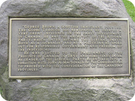 George Brown, a Scottish immigrant, founded The Globe. Through his newspaper he exerted a very great influence on the early development of Canada. He was the architect of the Reform Party, which later became the Liberal Party. Both as a journalist and as a politician he spoke out for responsible government and freedom of the individual. He was elected to the Parliament of the Province of Canada in 1851 and some years later, as leader of the Liberal Party, he entered into a coalition with John A. Macdonald of the Conservatives to proceed with the confederation of the Canadian provinces.